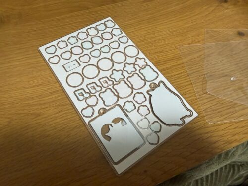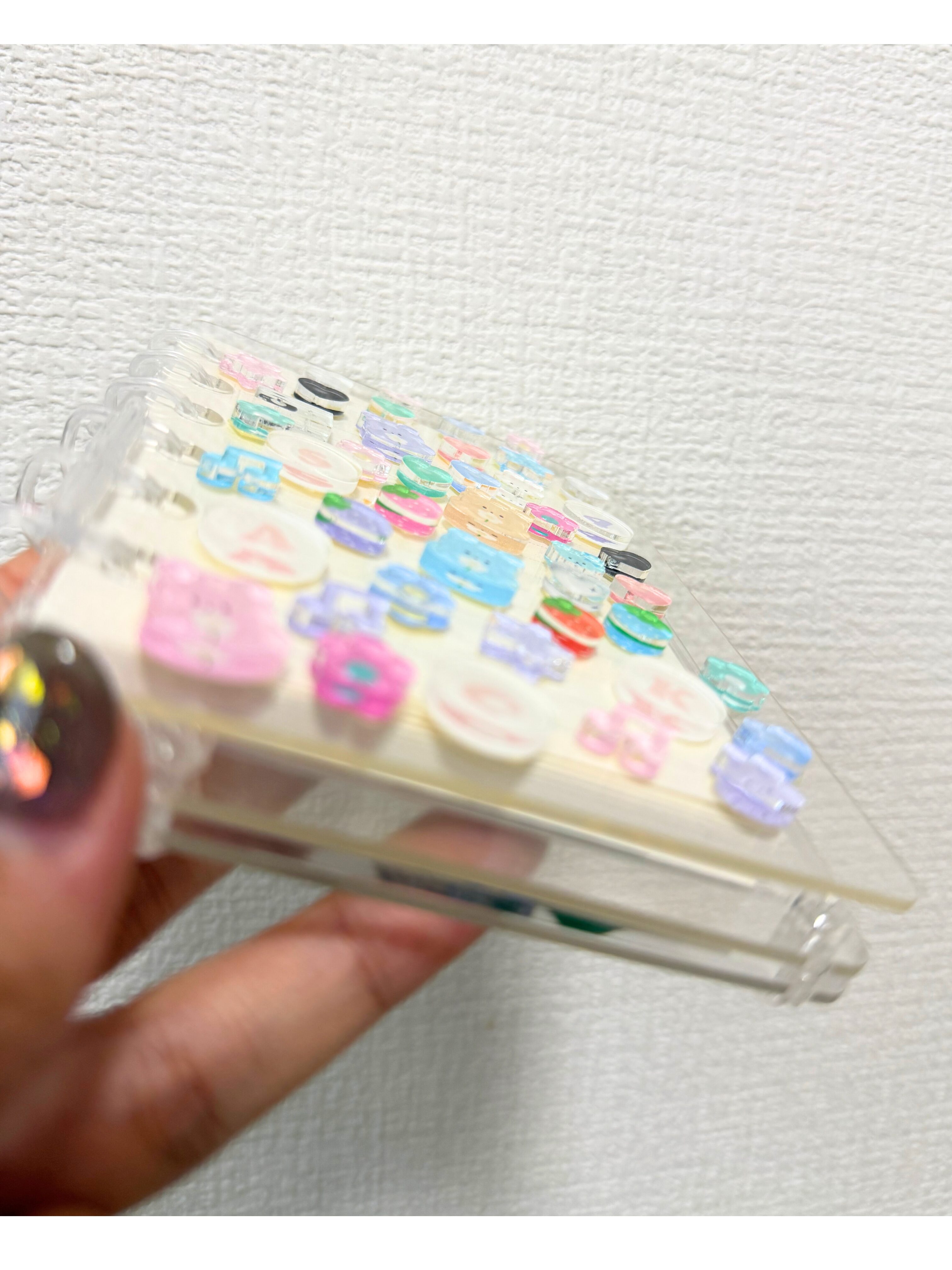 ってことで、私自身、ボンボンドロップシールが中々買えなかったので、なんとか安く可愛い物が手に入らないかな、ということで、アクリルグッズを注文し、両面テープを貼ってシールにしてみました。