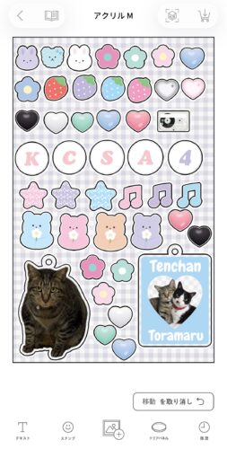 ボンボンドロップシール用の画像の他にも、アクリルキーホルダーにするための猫の画像を入れていました。