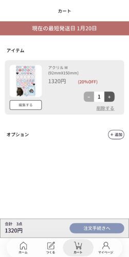 画面上部の「現在の最短発送日」を確認して、注文手続きをおこないましょう♪