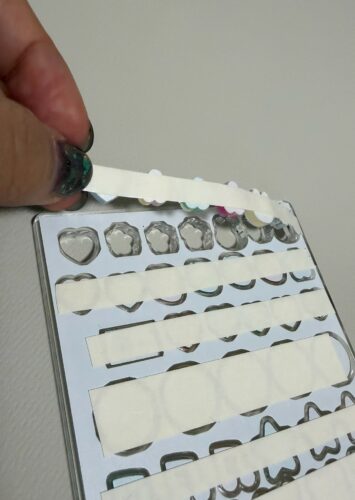 両面テープをアクリルの後ろに貼り付けていきます。