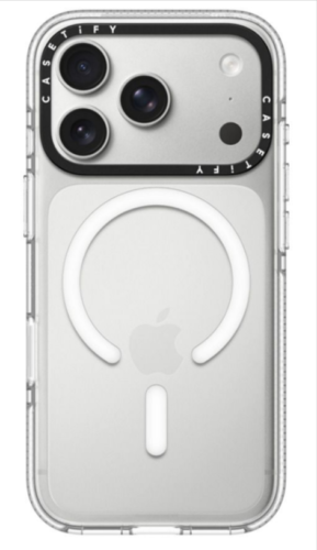 シンプルだけど、カメラ周りにはCASETiFYのロゴがしっかりと入っていて、存在感があるクリアケースです。